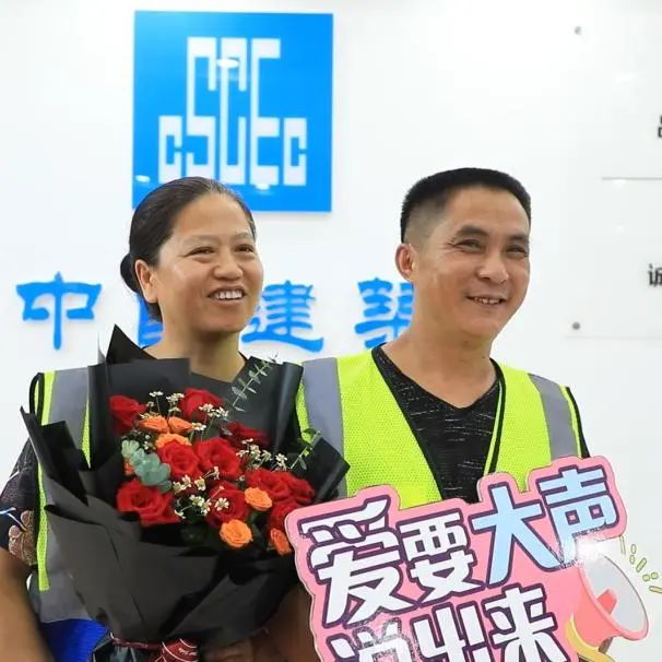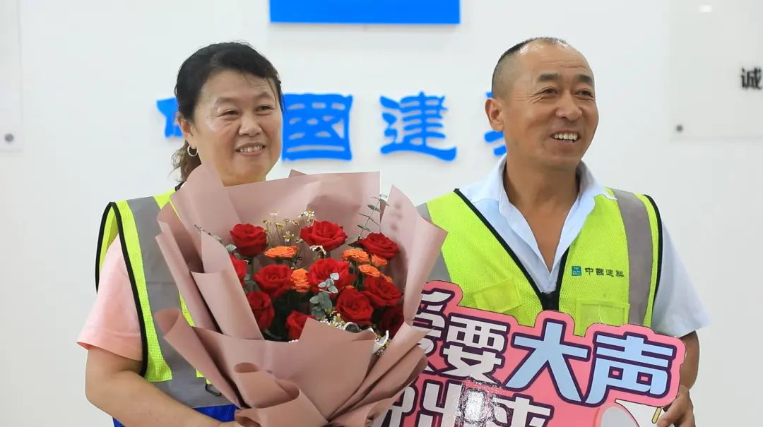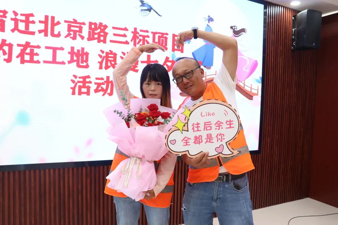電工組的徐青林今年50歲,常年和妻子黎倩在建筑工地打拼。“結婚這么多年,這真的是我第一次過七夕,在這里我也想對老婆說一句從來沒說過的肉麻話,老婆我愛你。”徐師傅羞澀地說。他的愛人更是飽含深情說道:“從認識他結婚到現在,這是第一次收到他送的鮮花,我們倆在一起,就不用說什么苦累!有他就是家!”資料員張印權望著妻子曹莉認真地說出了心里話,“老婆,感謝你愿意嫁給我,和我攜手共度余生……”