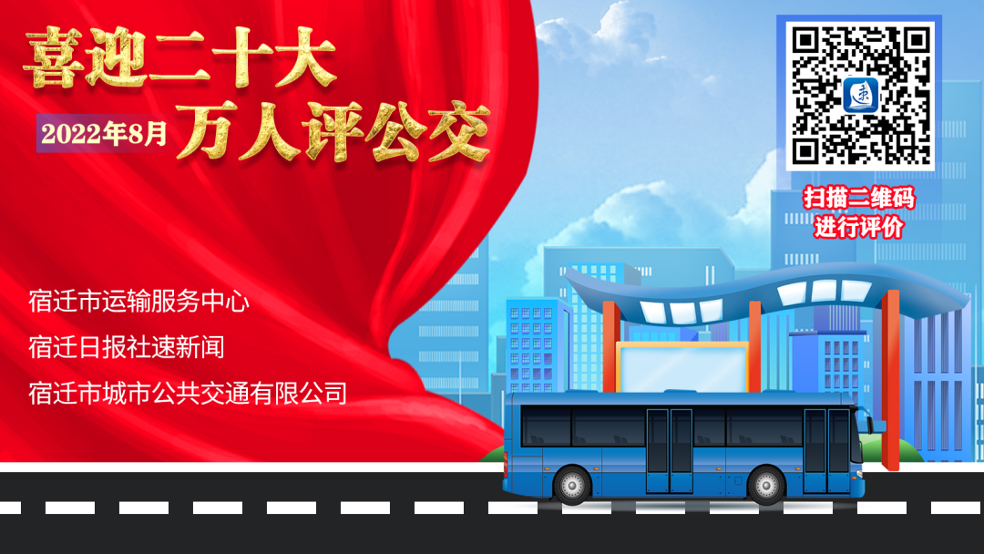 為繼續(xù)以公交新變化應對市民新需求、以服務新提升惠及群眾大民生,讓每一位生活在宿遷的市民可以共享城市發(fā)展的便捷,讓每一位來到宿遷的游客可以深刻感受到公交服務的周到與人性化,8月1日,宿遷市運輸服務中心、宿遷日報社速新聞、宿遷市城市公共交通有限公司特聯(lián)合開展“喜迎二十大 萬人評公交”活動,邀請廣大市民對宿遷城市公交運營情況作出客觀評價、提出寶貴意見和建議。