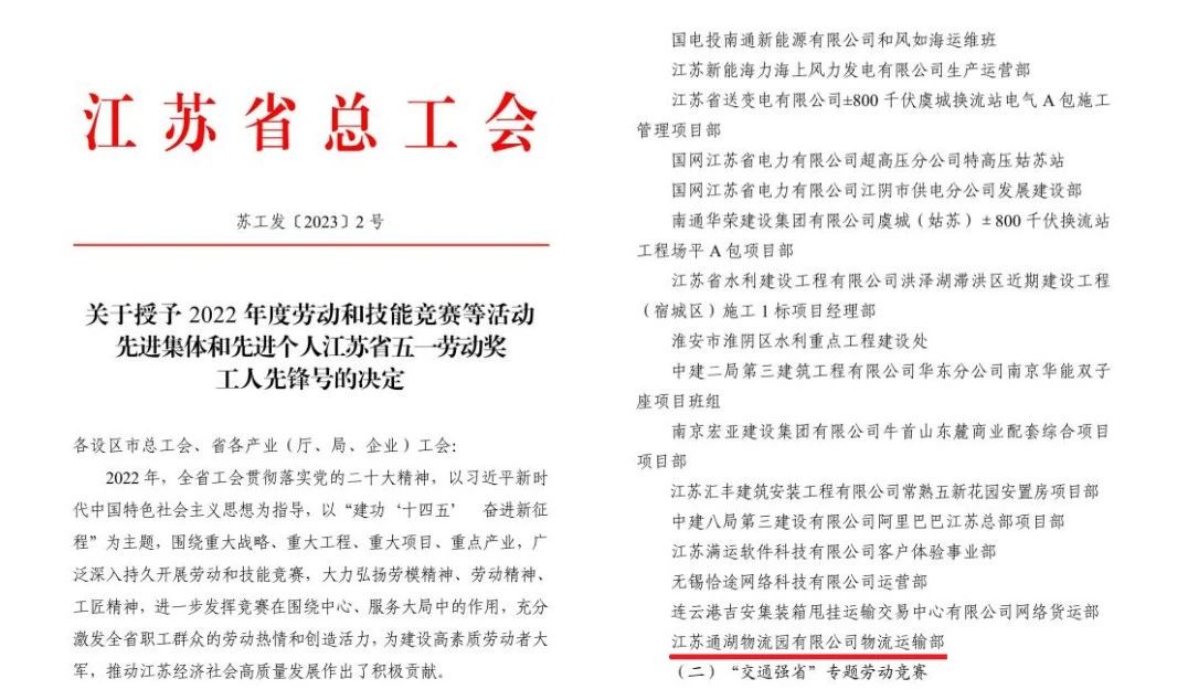【通湖物流園】物流運(yùn)輸部獲評(píng)“江蘇省工人先鋒號(hào)”