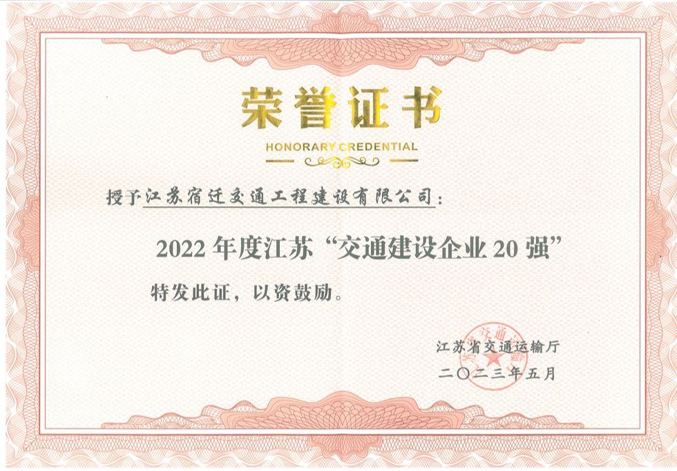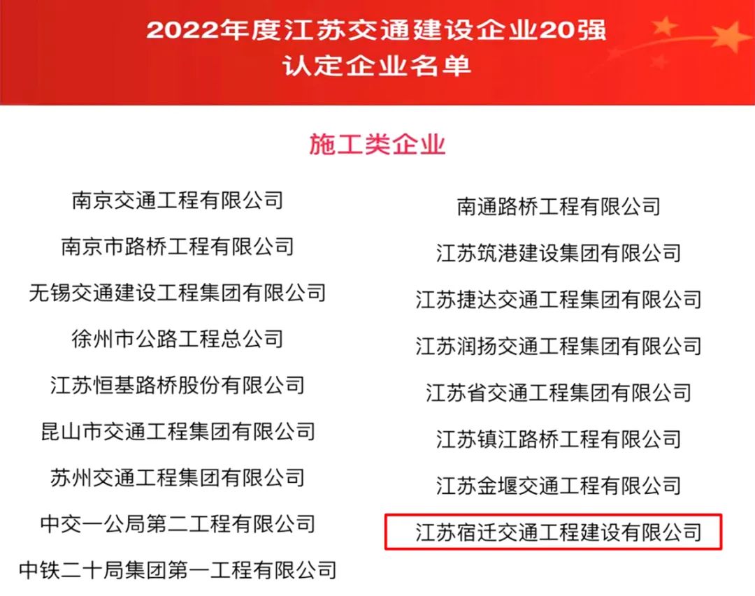 【宿遷交建】我市唯一!宿遷交建入選2022年度江蘇交通“建設企業20強”