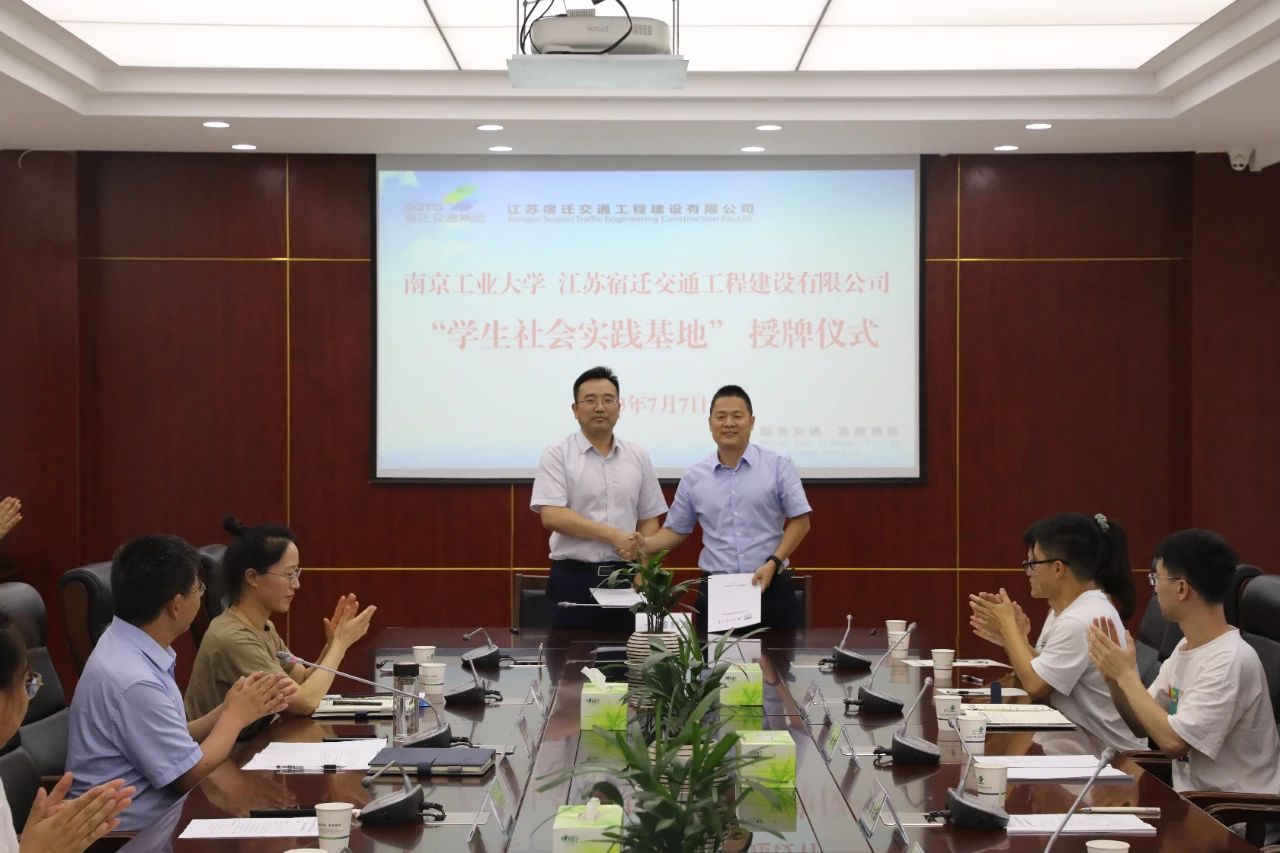 活動最后,雙方一同簽署社會實(shí)踐基地共建協(xié)議書,并授牌宿遷交建為“南工大學(xué)生社會實(shí)踐基地”,揭開雙方合作新篇章。