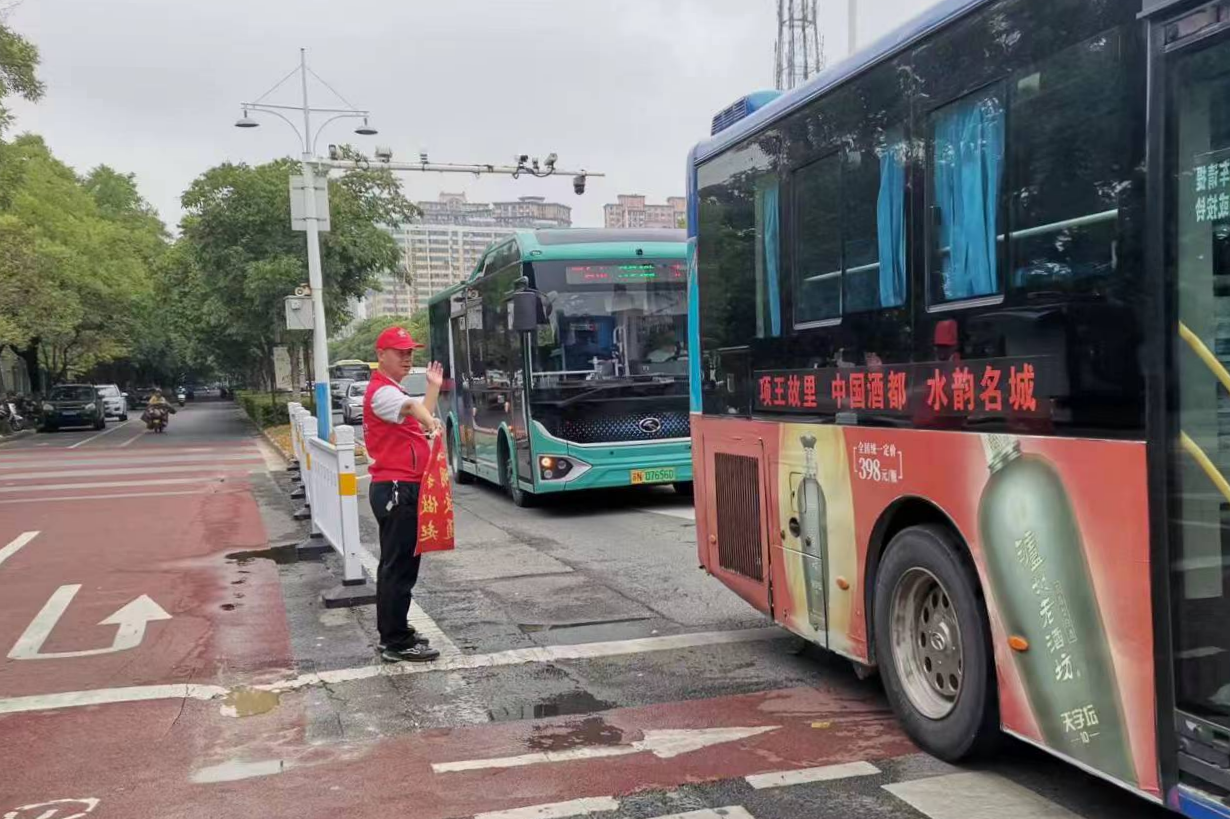 在市民出行的早晚高峰時段,公交志愿者們身穿紅馬甲,手拿小紅旗,準時來到中心城區人流密集的十字路口,協助維護交通秩序。盡管天氣炎熱、時有雷雨,但志愿者們精神飽滿、熱情洋溢,在交警的指導下耐心疏導過往車輛和行人,禮貌勸阻闖紅燈、橫穿馬路、未按規定佩戴頭盔等不文明行為,主動幫扶老弱病殘等特殊人群安全過馬路,并提醒右轉公交車駕駛員注意視覺盲區,保證行車安全。熱情禮貌、貼心周到的志愿服務,贏得了過往車輛和行人的主動配合與紛紛點贊。