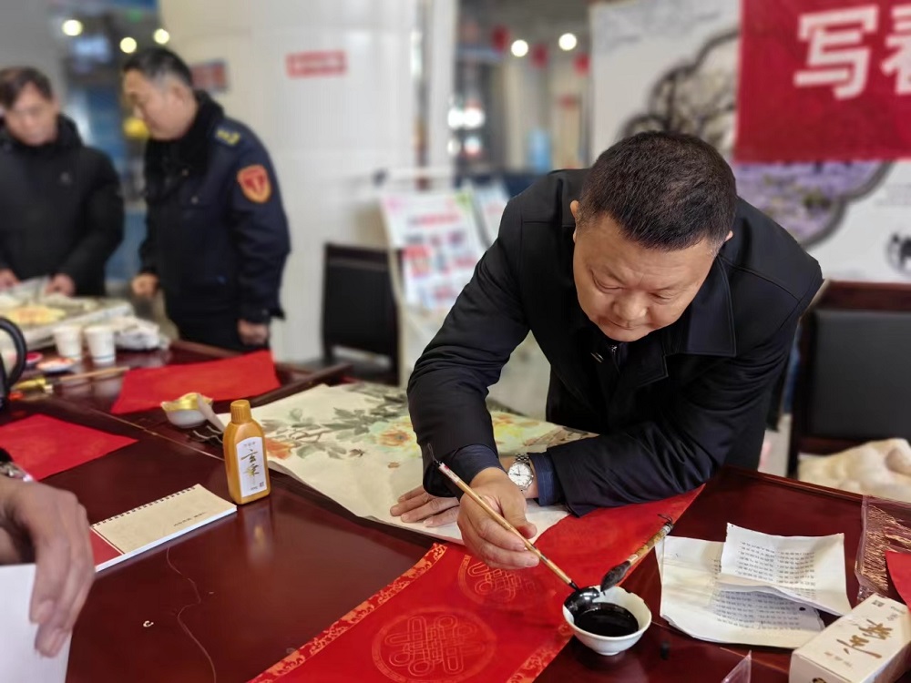 活動在公交綜合服務中心調度站、宿遷高鐵公交樞紐站、雪楓公園公交樞紐站三處公交場站開展,10位書法愛好者現場揮毫潑墨,以筆墨承載祝福,用愛心傳遞溫度,不一會兒,一副副寄托著祝福的春聯,一張張滿含祝愿的“福”字,在他們手中寫就。前來領春聯的市民、職工絡繹不絕,或是欣賞觀摩,或是拍照留念,大家手持春聯,笑容滿面,濃濃的年味撲面而來。“傳統文化要傳承,這樣的春聯比在外面購買的更有意義。”領取春聯的市民發出贊嘆。