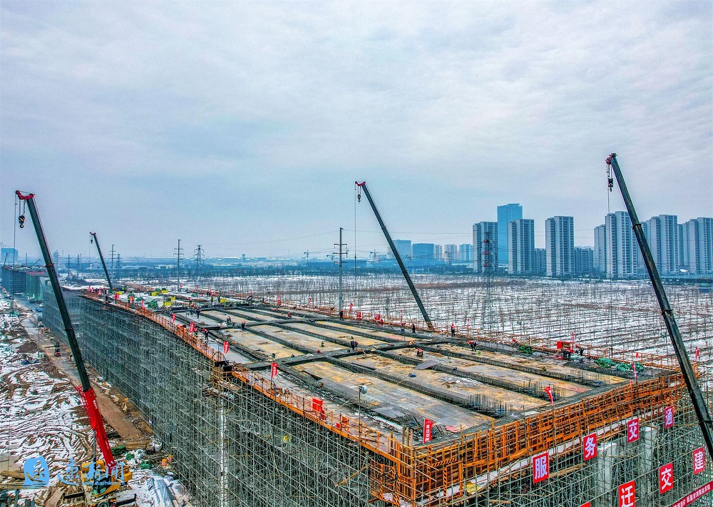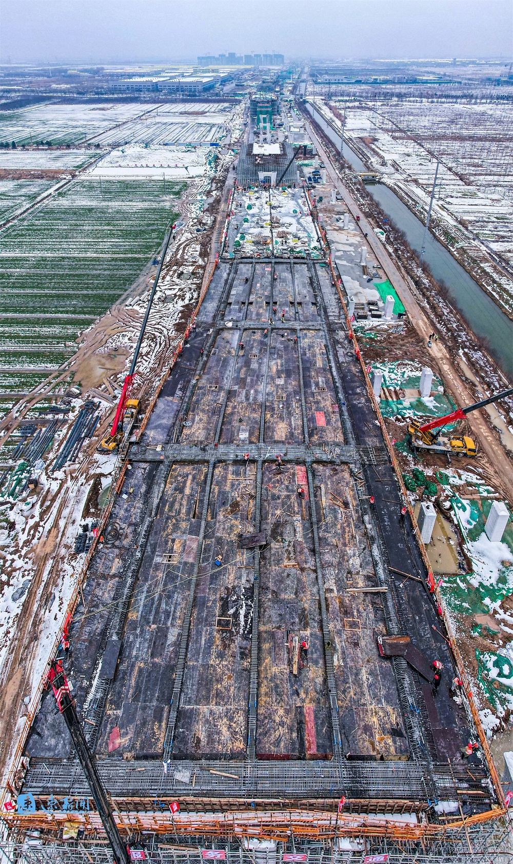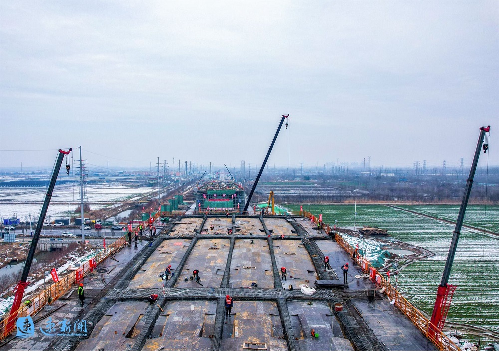 2月28日,在宿遷市酒都路(原張家港大道一期)快速化改造工程現場,施工器械不斷運轉,工人正在緊張施工。