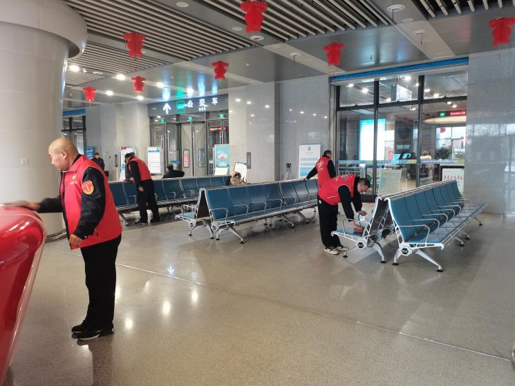 與此同時,在高鐵公交樞紐站,身穿紅色馬甲的志愿者們分工明確、不停忙碌,有的負責維護現場秩序,有的則熱心導乘、幫扶老弱。待人潮散去后,他們又一起將候車區座椅擦拭干凈。他們的用心服務得到了來往乘客的一致稱贊,在志愿服務站穿梭的“志愿紅”成為一道亮麗的風景線。