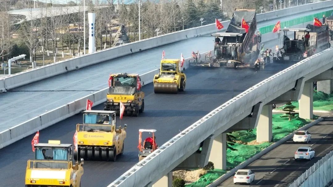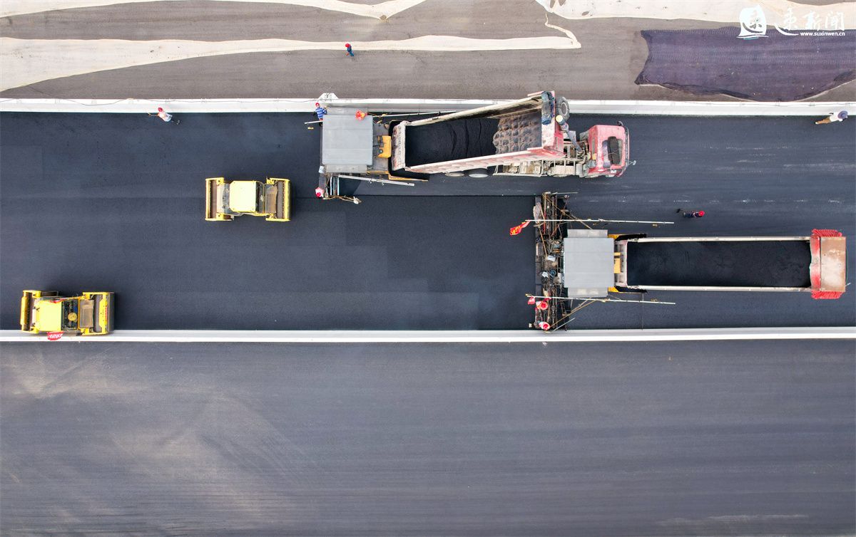 作為路面工程中質量要求最高的一道工序,也是主體工程的最后一道工序,瀝青攤鋪過程對標準化作業要求非常高。從瀝青混合料的拌合、運輸到攤鋪、碾壓,項目部統籌策劃,高效推進,做到各道工序整體協調、有序配合。根據現場機械和人員安排,下面層瀝青攤鋪以每天1公里左右速度推進,上面層瀝青攤鋪以每天1.2到1.8公里推進。天氣晴好的情況下,預計整段路面的瀝青攤鋪將于6月中下旬完成。