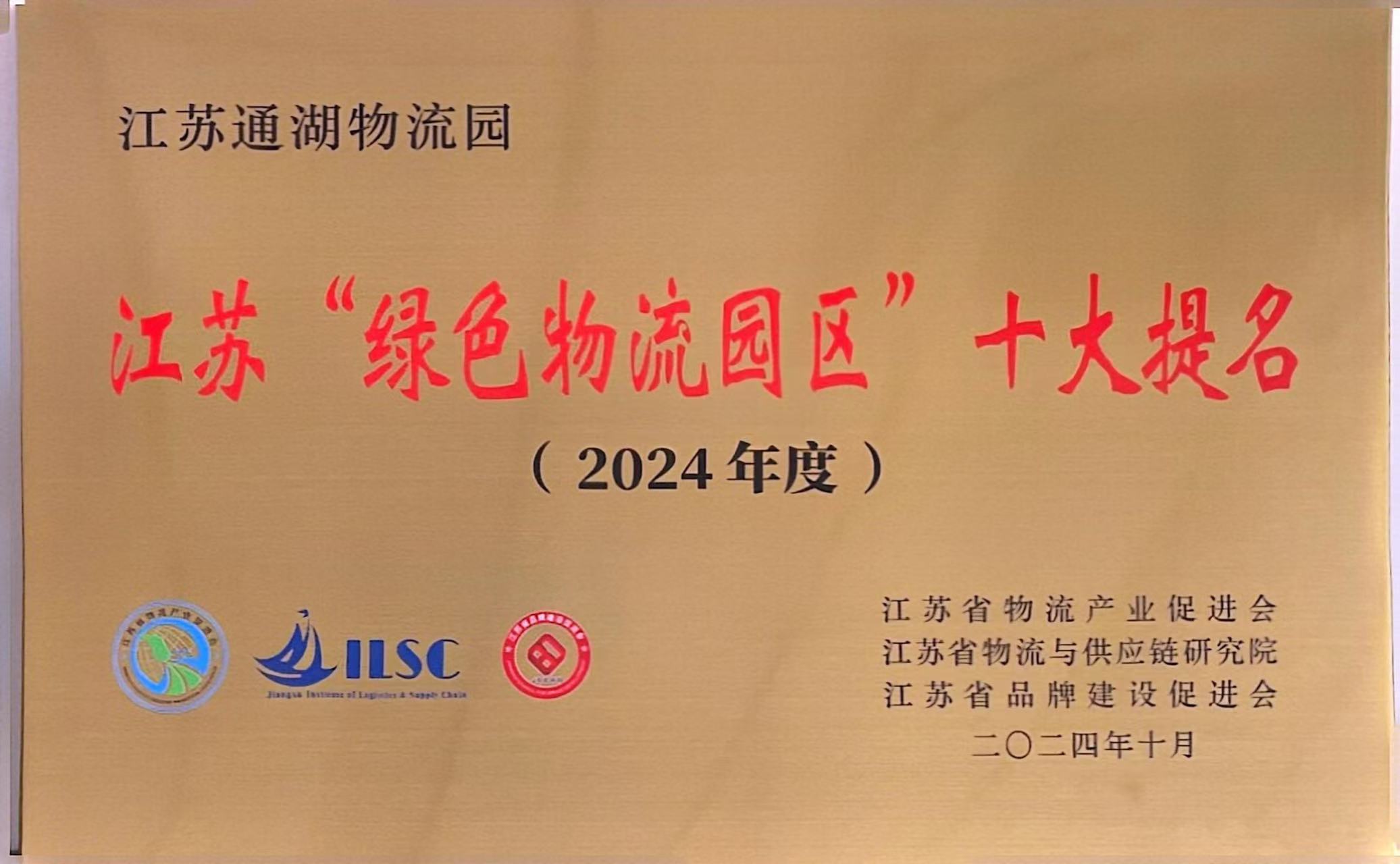 【通湖物流園】通湖物流園榮獲2024年度江蘇“綠色物流園區”十大提名