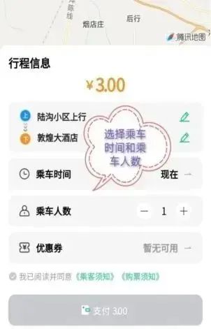 • 選擇上車站點和下車站點,選擇乘車時間以及乘車人數;