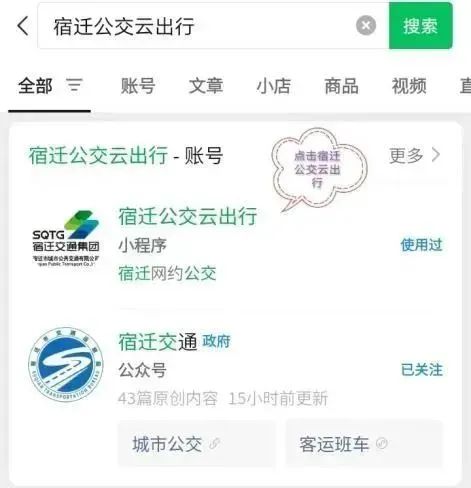 • 微信搜索“宿遷公交云出行”或手機掃公交站臺網約公交二維碼,進入小程序。