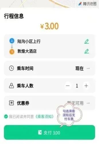 “‘網約公交’運營時間為上午7點至下午6點,票價采用‘一票制’,3元/人次。我們鼓勵乘客進行線上支付,先付后乘。需要注意的是,乘坐‘網約公交’的群眾是無法享受免費乘車或刷卡優惠等政策的。”