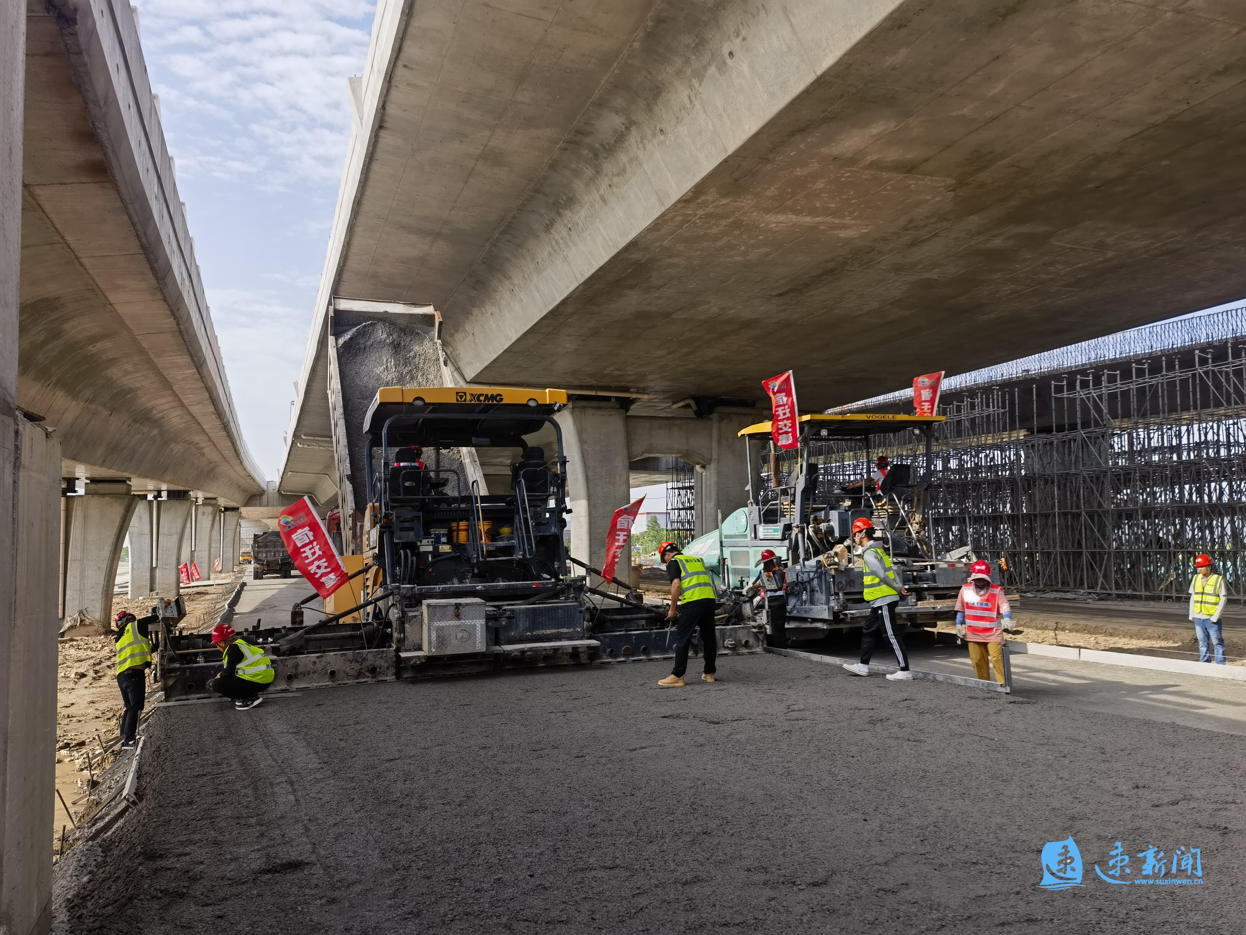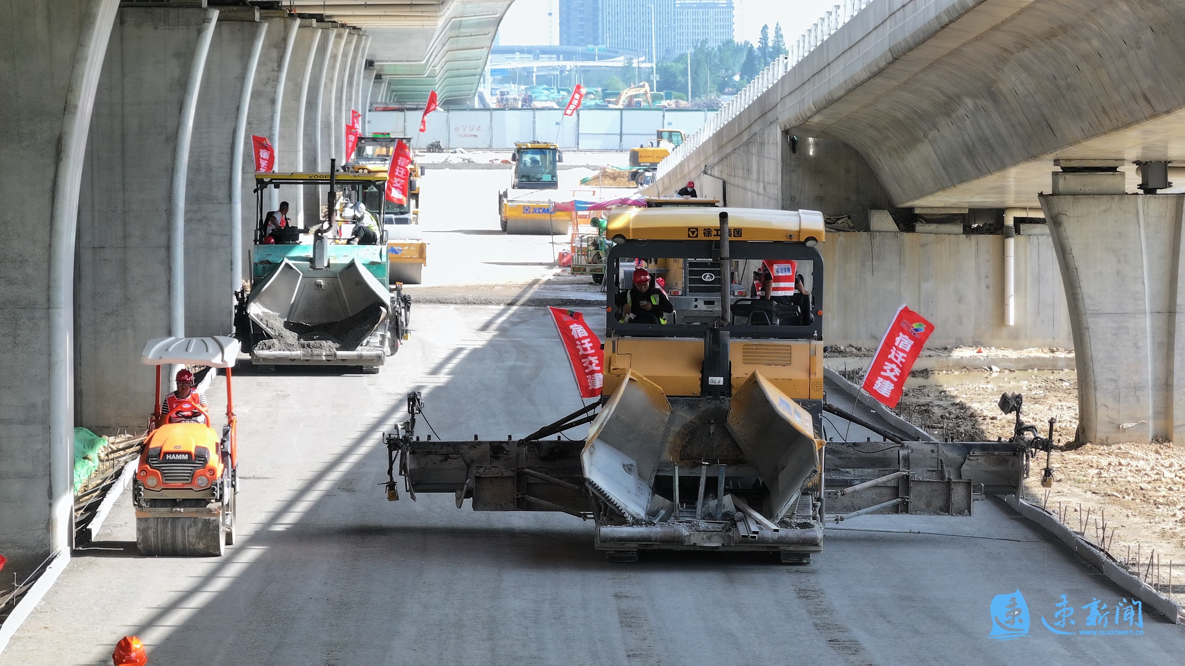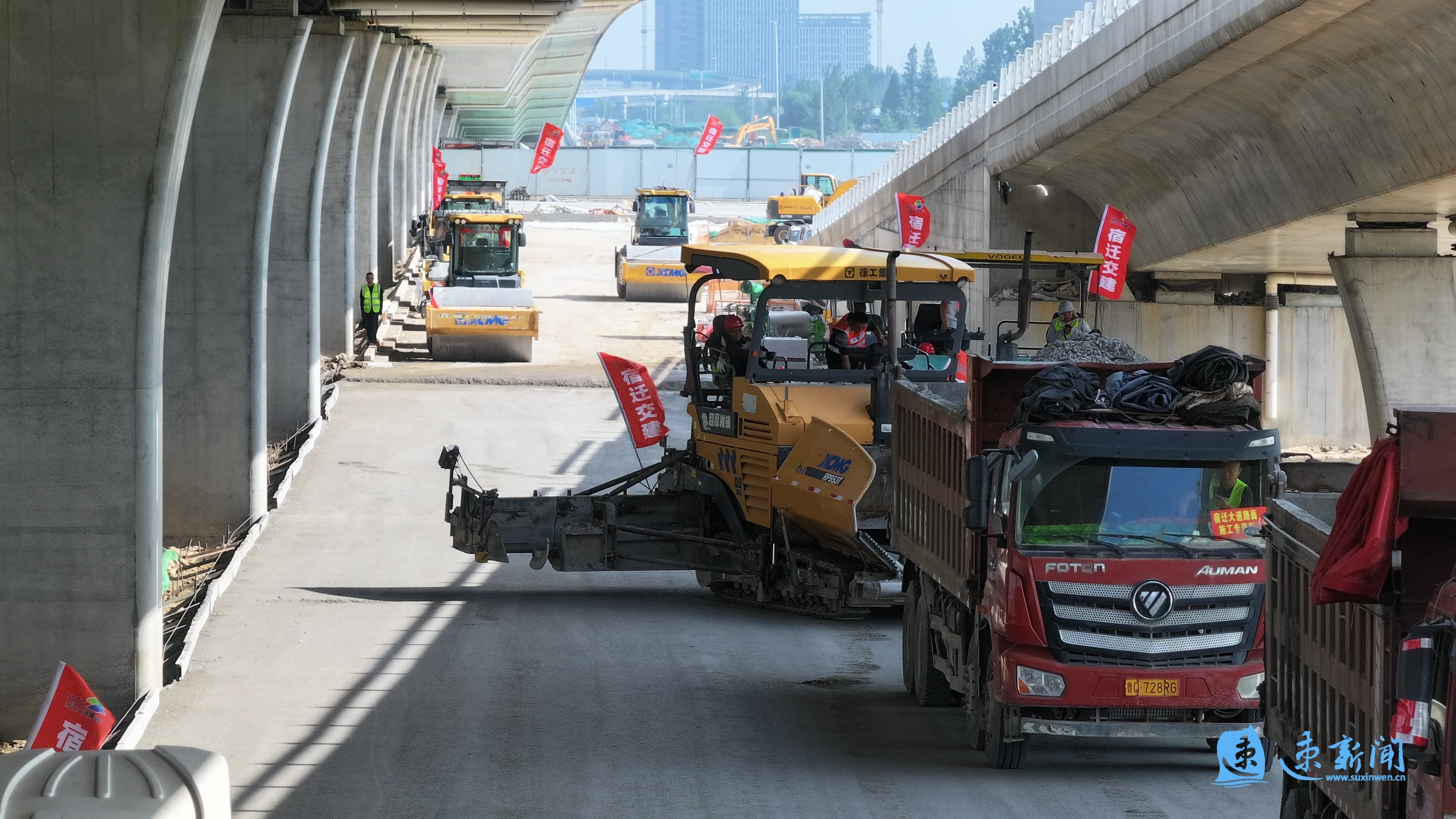 高空俯瞰建設中的酒都路快速化改造工程,這條南北走向的交通動脈已全線貫通,宛如一條綿延的鋼鐵巨龍,氣勢恢宏。橋下施工區域,兩臺攤鋪機正勻速攤鋪水穩層,壓路機緊隨其后來回碾壓,現場機械轟鳴,一派繁忙有序的施工景象。截止目前,完成投資21.09億元,占項目總投資的92%,預計年底建成通車。
