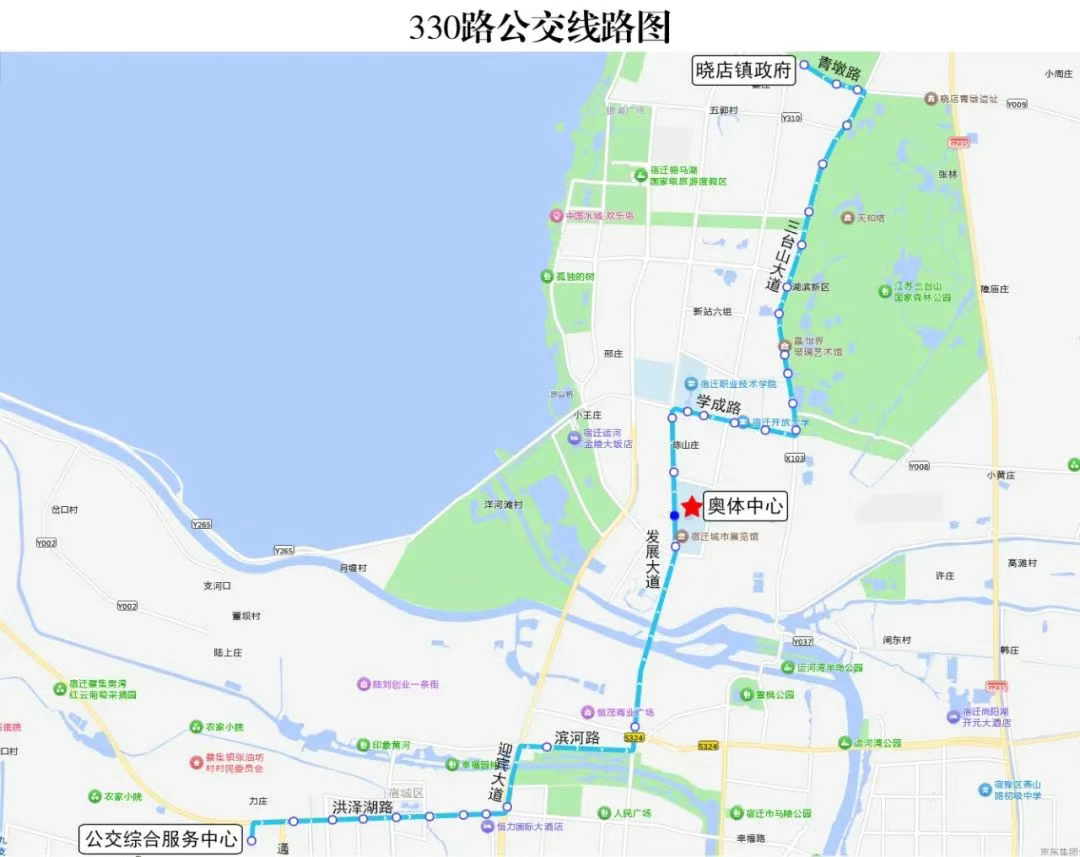 具體線路:洪澤湖路--發展大道--奧體路--會展中心(奧萊廣場)