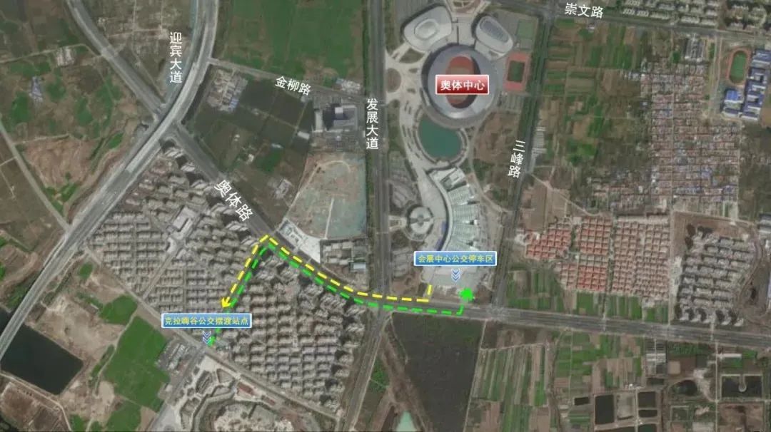 克拉嗨谷停車區公交擺渡線路:克拉嗨谷西門--奧體路--會展中心(雙向擺渡)