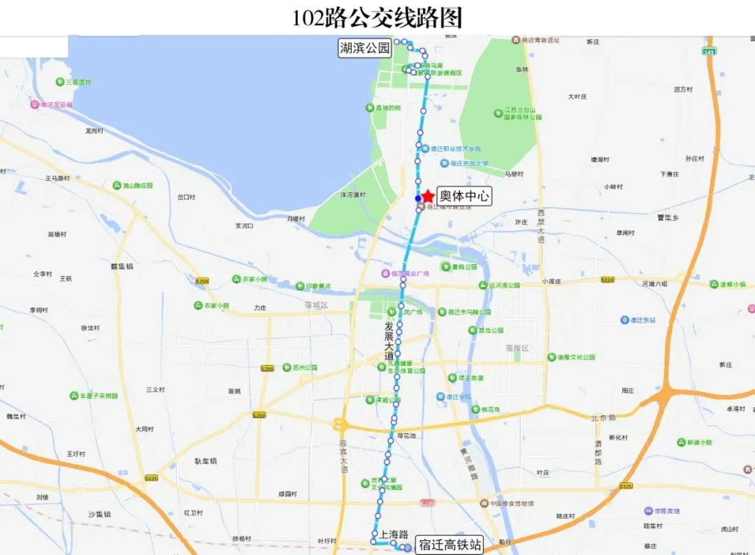 沿線接駁點:京東客服中心公交站點、宿遷市中醫院公交站點、府東大廈公交站點、金鷹國際公交站點、大潤發公交站點、江蘇有線公交站點。