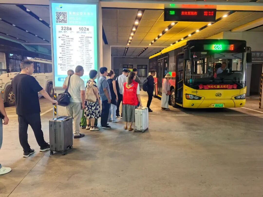 青年志愿者們也成為節日里的“溫暖使者”。他們身著紅色志愿服,活躍在各大公交站點。在高鐵公交樞紐站,志愿者們主動幫攜帶大件行李的乘客搬運行李,引導他們快速找到乘車線路。