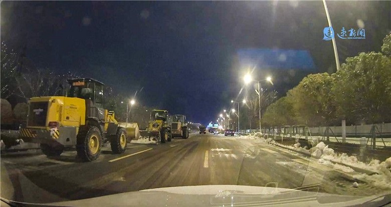 據(jù)邱女士回憶,凌晨的天空仍是一片漆黑,但快速路上卻燈火通明,沿途不時(shí)可以看到正在清理道路積冰的工作人員和施工車輛。當(dāng)時(shí)快速路不同路段已經(jīng)開辟出了1到2條車道供車輛正常行駛。
