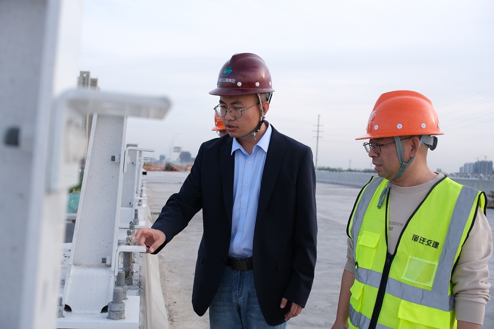 港城路上跨鐵路專用線橋梁工程是運河宿遷港產業園骨架路網中的“三橫”之一,東西貫穿園區,是貨物通過港區企業產品走向全國各地乃至全球的紐帶。司漢認為,道路工程事關全市經濟社會發展,早一天完工,城市發展的腳步便會快上一天,這是他們的職責,即便節假日也不例外。